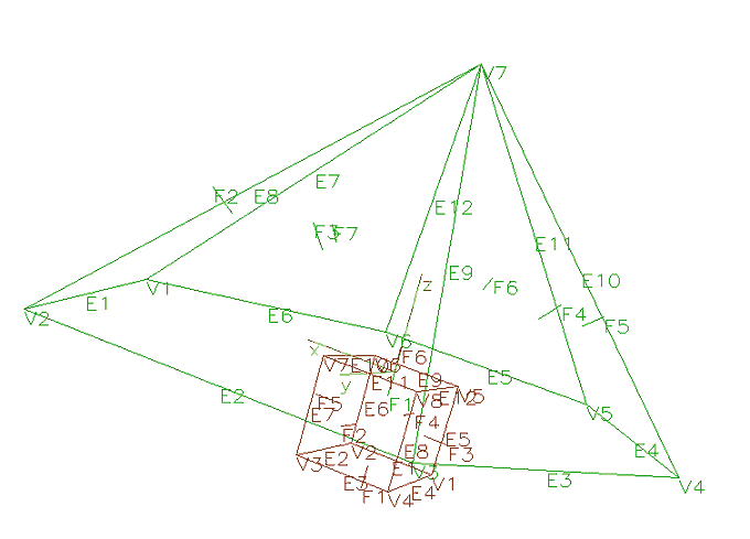 Tetraeder - komentar modela (do 80 znakov) 4 - število točk 0. 0. 0. - koordinata točke 1. 5. 0. 0. - ... 2.5 4.330127 2.5 2.5 4.330127 -2.5 6 - število robov 1 3 - rob 1. (od točke 1. do 3.) 3 2 - ... 2 4 4 1 4 3 1 2 4 - število ploskev 4 1 5 - robovi, ki povezujejo 1. ploskev 3 5 2 - ... 6 2 1 6 4 3V tako definirani bazi smo omejeni na ravninske modele brez sferičnih ploskev, cilindrov, izvrtin, zaokroženih robov ter podobno.