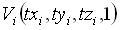 Vektor, ki ga množimo z matrikami pa je četrte dimenzije in je sestavljen iz treh koordinat točke, četrti člen pa je 1: