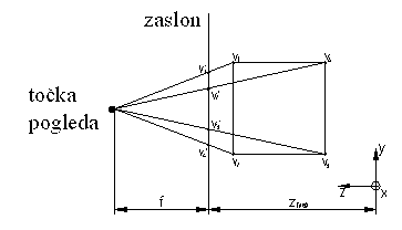 Nove koordinate perspektive izračunamo s pomočjo podobnih trikotnikov: